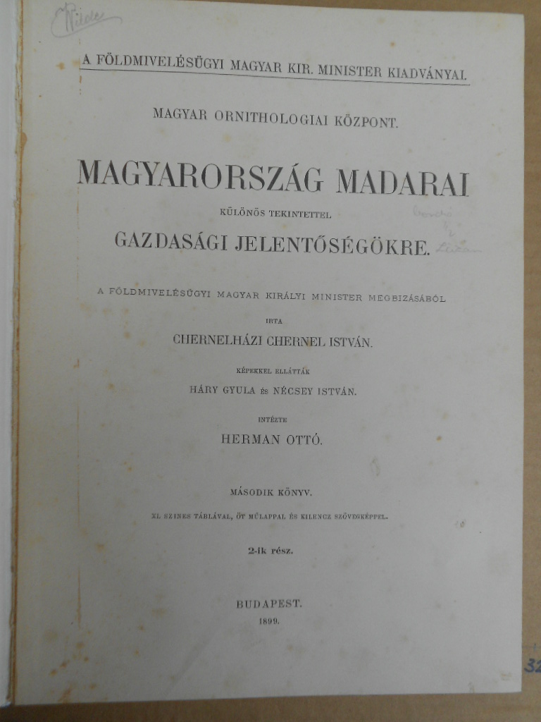 | Cím | Magyarország madarai különös tekintettel gazdasági jelentőségökre I-III. |