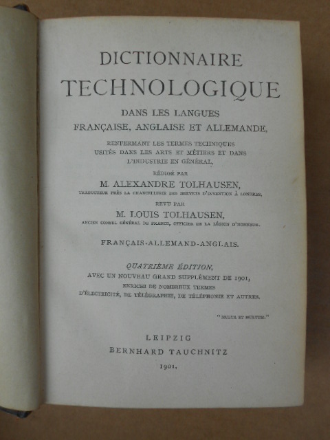 Dictionnaire technologique dans les langues français, anglaise et allemande