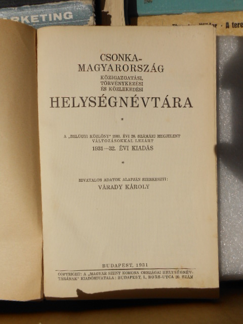 | Cím | Csonka-Magyarország helységnévtára 1931-32 |