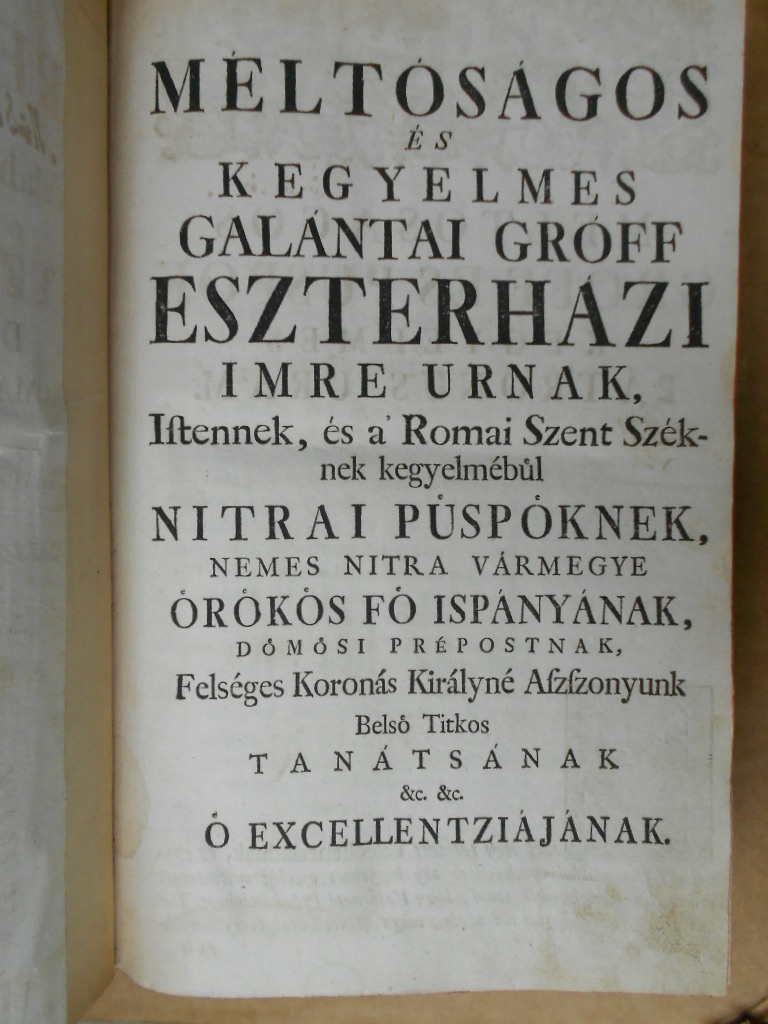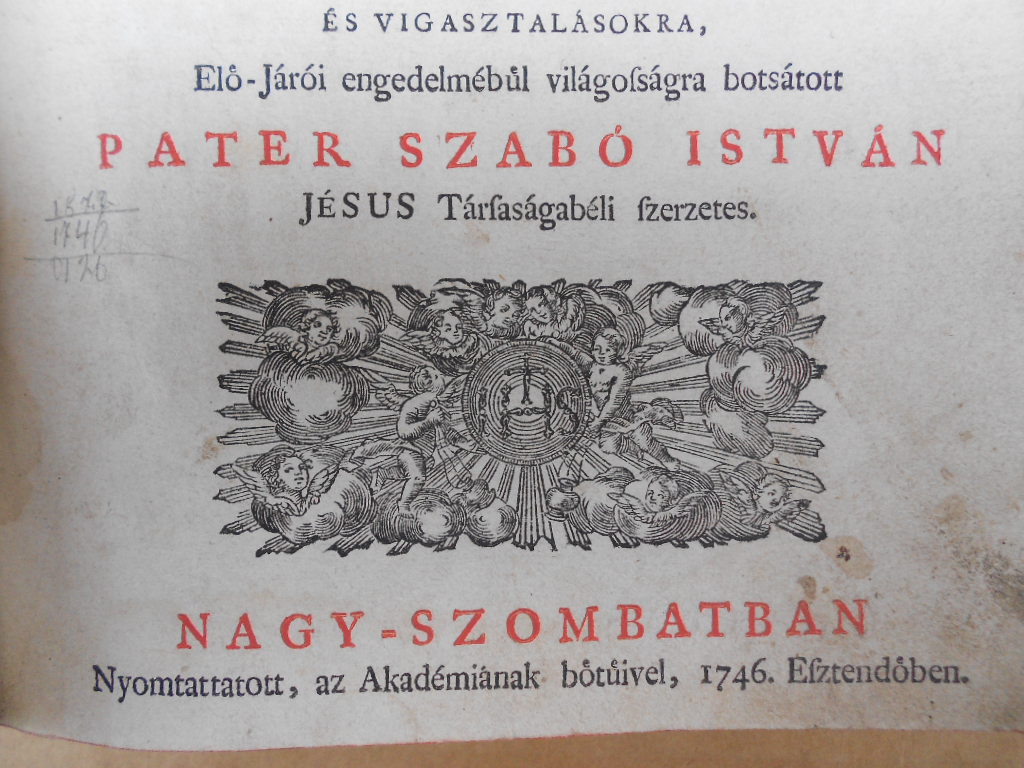 | Alcím | mellyeket valaha élő nyelvel mondott, most pedig Istennek nagyobb dütsőségére, a romai anyaszentegyháznak gyarapodására, a magyar lelki pásztoroknak valamennyi segítségekre, a keresztény híveknek üdvösséges hasznokra... világosságra botsátott. |