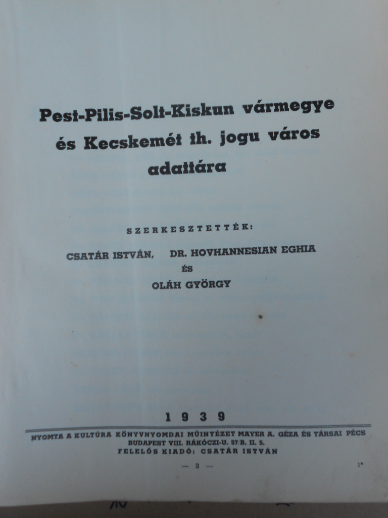 Pest-Pilis-Solt-Kiskun vármegye és Kecskemét th. jogu város adattára